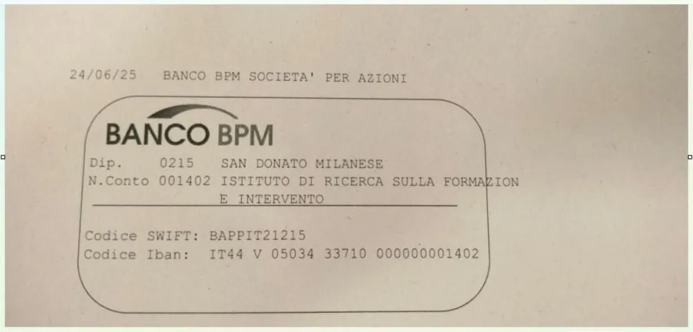 L'IBAN è: I T 44 V 05034 33710 000000001402
