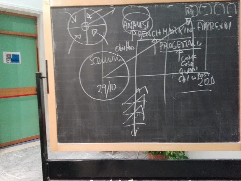 Nel primo incontro di progettazione partecipata si è sviluppata un' attività collettiva per individuare i gruppi di progetto da costituire e i referenti che si sentissero di coordinarne l’attivazione. Si sono posti alla lavagna i quattro progetti definiti nel workshop del giorno 15 di ottobre e si sono aggiunti i progetti che l’Associazione Buona Onda aveva messo a fuoco precedentemente. Per ciascuno si è poi negoziato sul nome del referente. Ai gruppi è stato consigliato di usare una serie di slide che guidano l’attività progettuale secondo i seguenti passi: