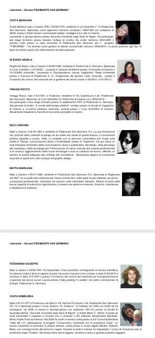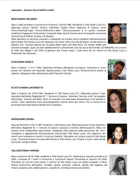 Hanno portato a termine la propria formazione 20 giovani. Essi hanno lavorato alla realizzazione di cinque progetti di promozione territoriale e hanno presentato il frutto del loro lavoro agli Amministratori dei rispettivi comuni il 5 di agosto a Piedimonte San Germano. I Laboratori sono stati costituiti recuperando luoghi che avevano altre destinazioni e ristrutturandoli seguendo i principi ergonomici, aiutati in questo lavoro dai soci ergonomici della SIE Lazio: