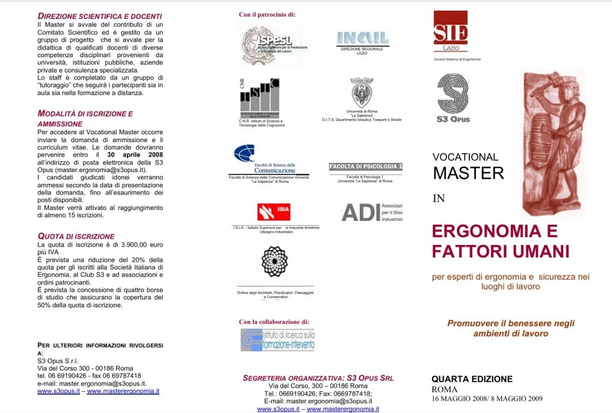 La Locandina della V edizione del master in Ergonomia