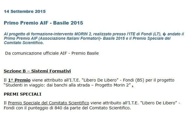 - 2014 - Progetto Morin 1 (Fondi) Orientamento