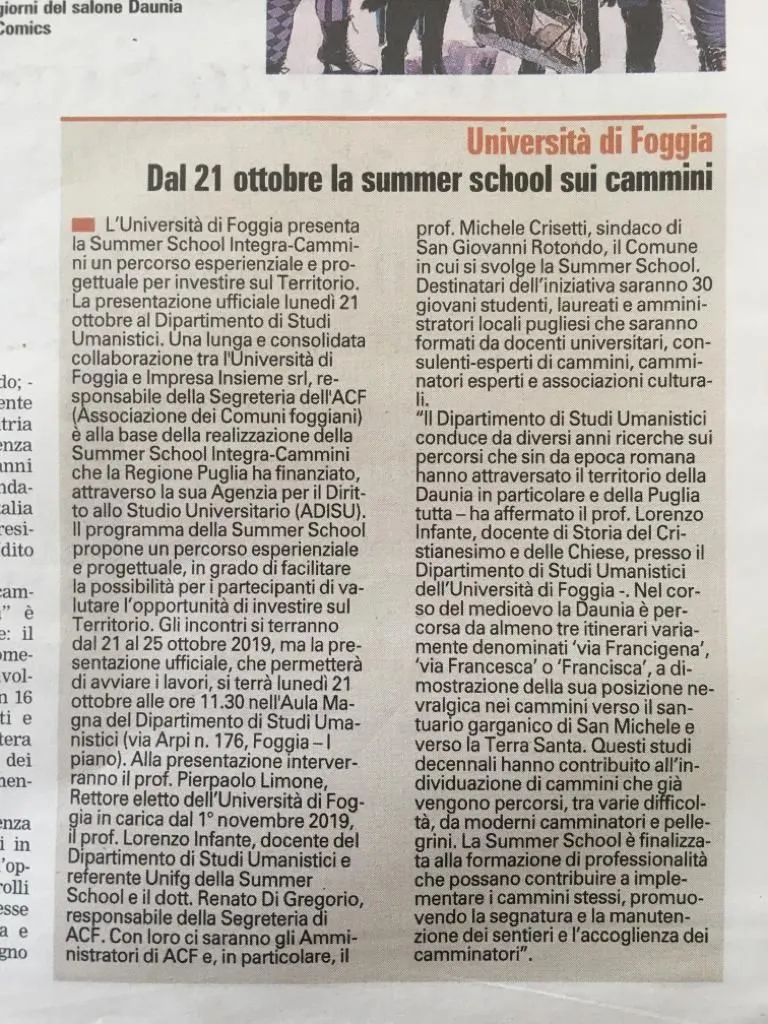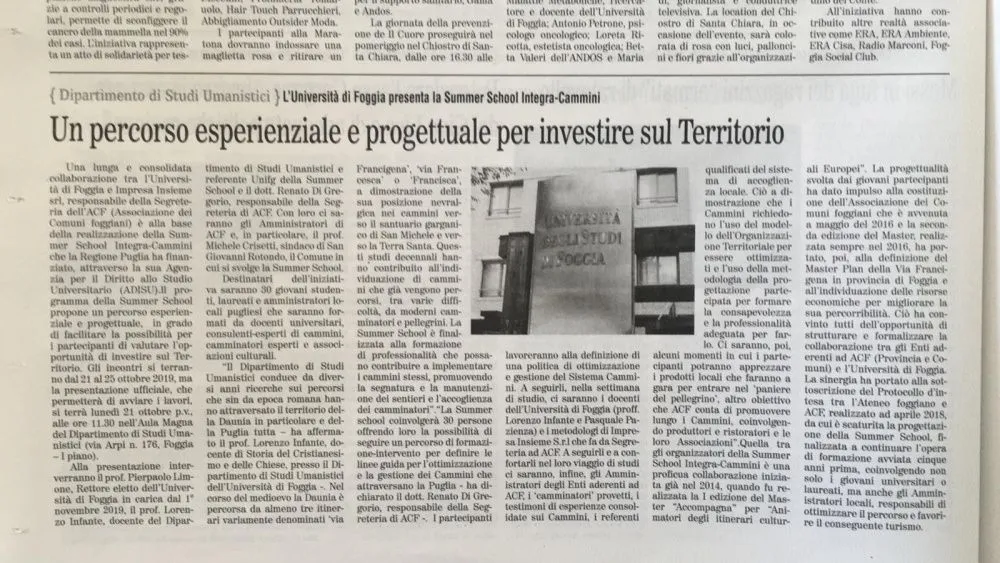 10.10.2019_ Il progetto INTEGRA-Cammini è stato presentato alla Stampa e agli organi istituzionali presso il Rettorato di UNIFG assieme al progetto Eurocamp 2027.